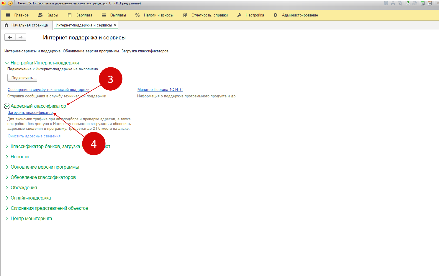 - Выбрать из списка подраздел «Адресный классификатор» (3);
