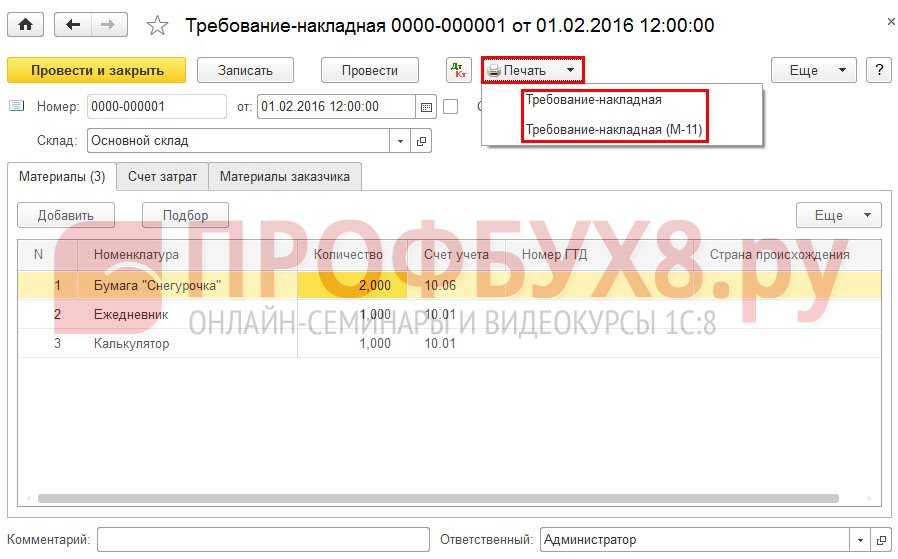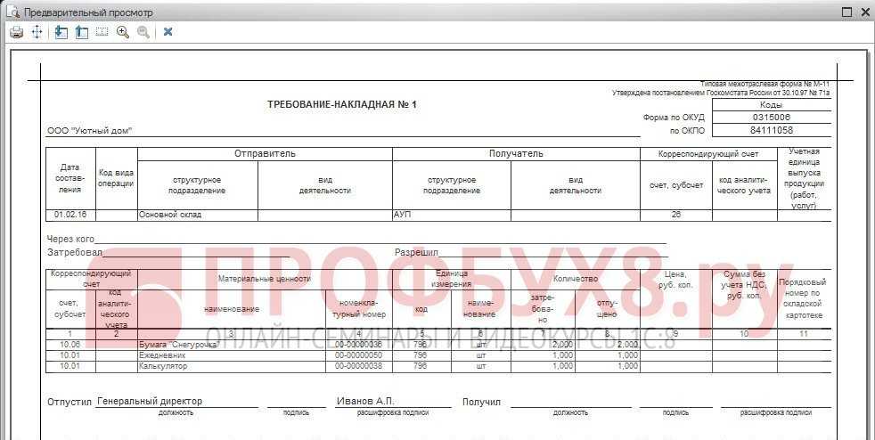 Однако в документе «Требование-накладная» также присутствует поле «Цель расхода», которое является обязательным для заполнения (потому как без этого документ не будет сверстан и не сможет быть отправлен на печать). В законе №402-ФЗ ничего про данную графу не говорится и требования по ее заполнению отсутствуют.
