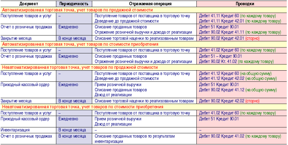 Если товары в розничной торговле учитываются в ценах приобретения, то нет необходимости выполнять специальный расчет торговой наценки: при вводе каждого документа «Отчет о розничных продажах» себестоимость проданных товаров отражается по дебету счета 90.02 «Себестоимость продаж» и кредиту счета 41.02 «Товары в рознице по покупной стоимости». Выручка от продаж отражается по кредиту счета 90.01 «Выручка», причем в случае АТТ для регистрации выручки «1С:Бухгалтерия 8.0» использует тот же документ «Отчет о розничных продажах», а в случае НТТ — документ «Приходный кассовый ордер» с видом операции «Прием розничной выручки».