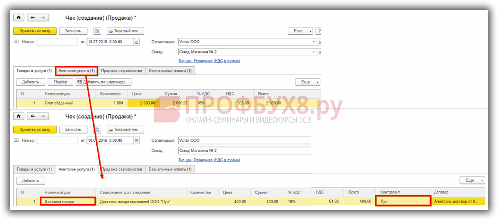 Агентские услуги при розничной торговле в 1С 8.3