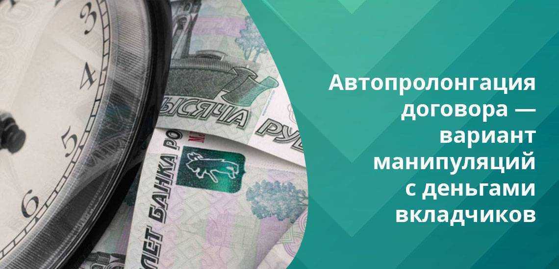 Еще одной манипуляцией с деньгами вкладчиков является автопролонгация договора. Если средства клиент не забрал в день окончания депозита, то на следующий день они размещаются на новый срок. Для снятия доступны только проценты.