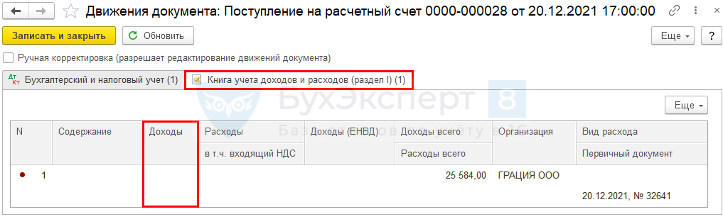 Сумма субсидии не попадает в графу Доходы регистра накопления Книга учета доходов и расходов.