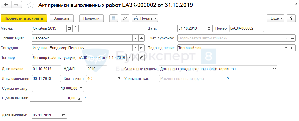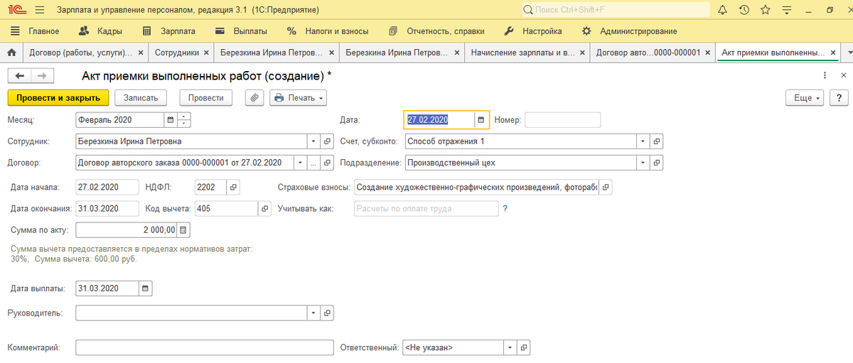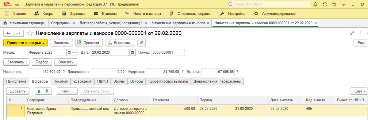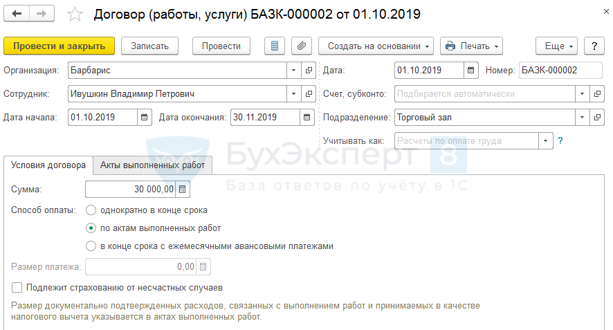 Порядок оформления договора ГПХ в программе 1С ЗУП 8.3