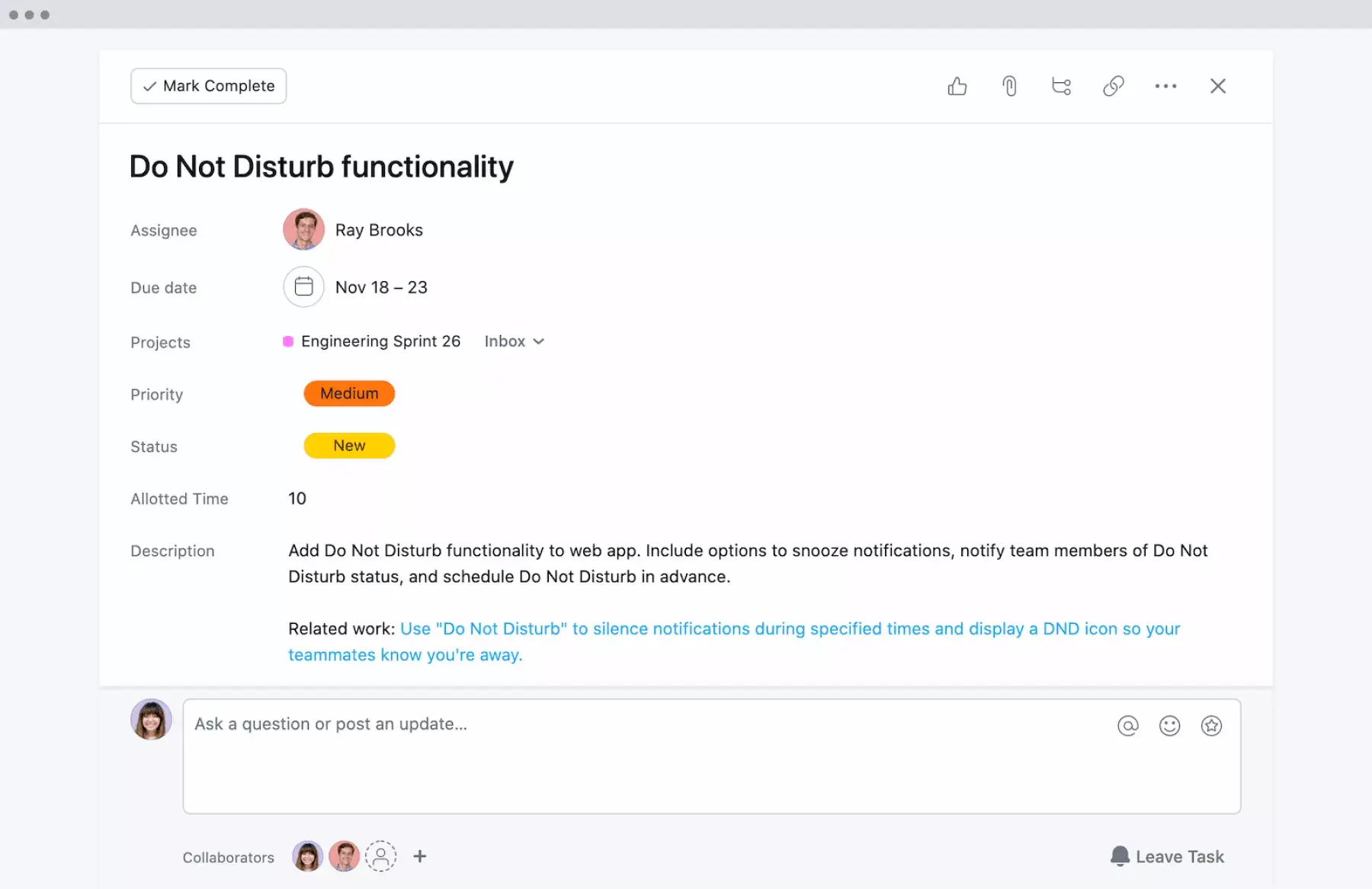 Что сделать. Если в работе можно выделить отдельные блоки, то мы создаем задачи и подзадачи. Это вопрос декомпозиции активности для исполнителя, и с другими участниками команды делиться такими этапами неэффективно. Подзадачи удобно отслеживать на своей личной доске, а командную это перегружает.