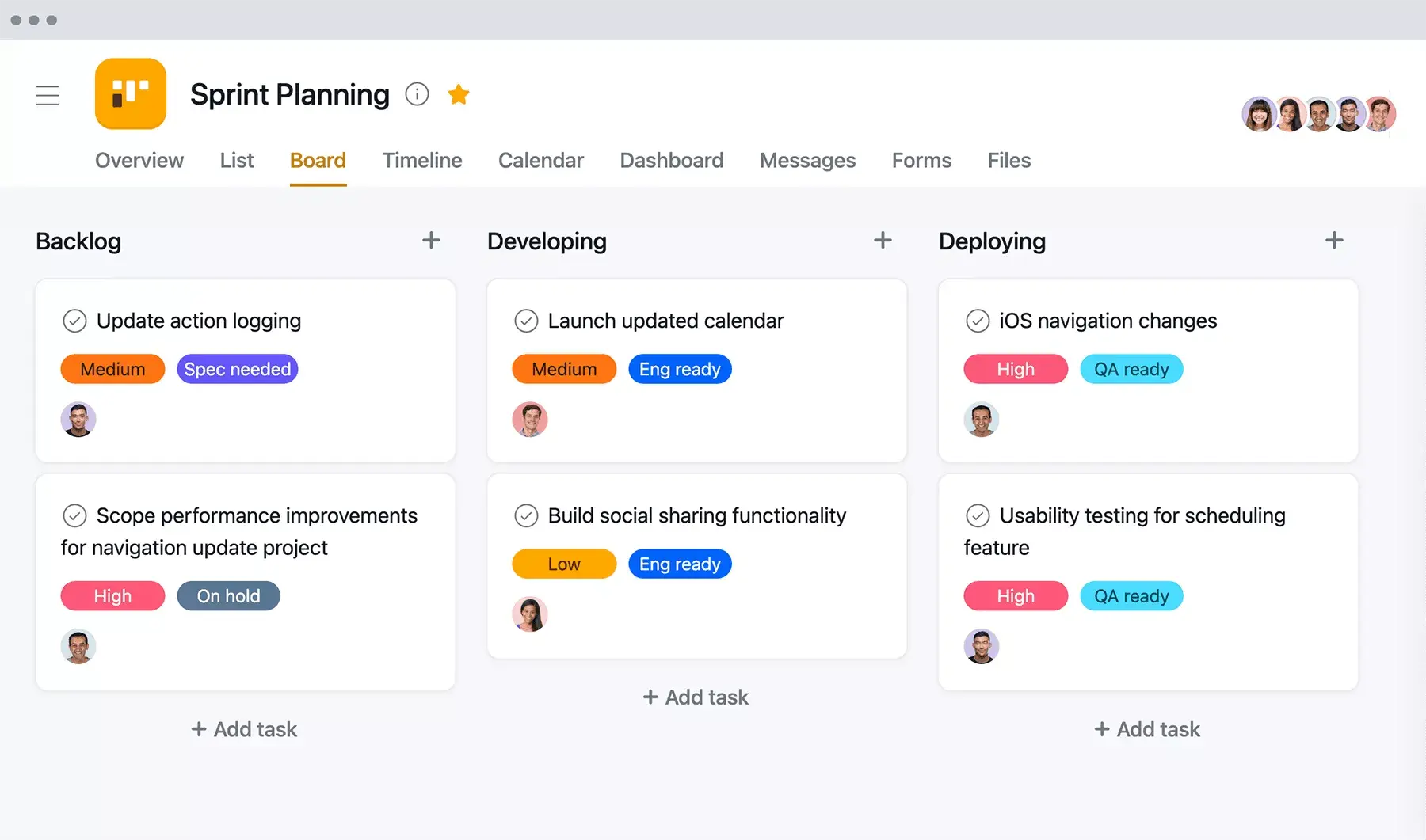Даже если ваша канбан-доска будет впоследствии содержать все невыполненные задачи и завершённую работу, сейчас вы можете начать с чистой доски. Если вы используете инструмент управления работами, например Asana, не забудьте переключиться в режим доски.