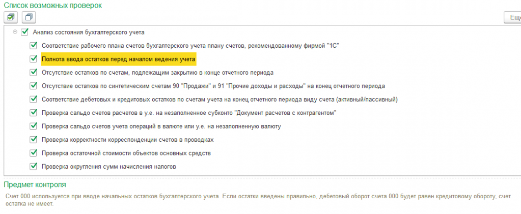Обработка «Экспресс-проверка ведения учета»