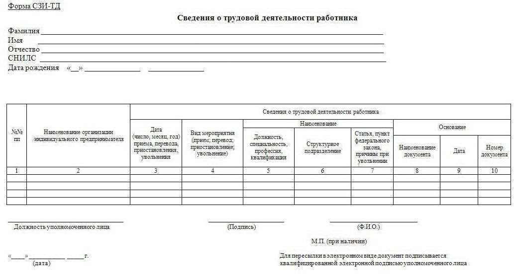 Электронная трудовая книжка выглядит как выписка по форме СЗИ-ТД.