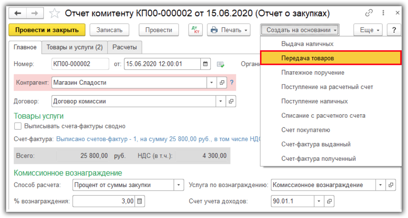 Передача товара комиссионеру