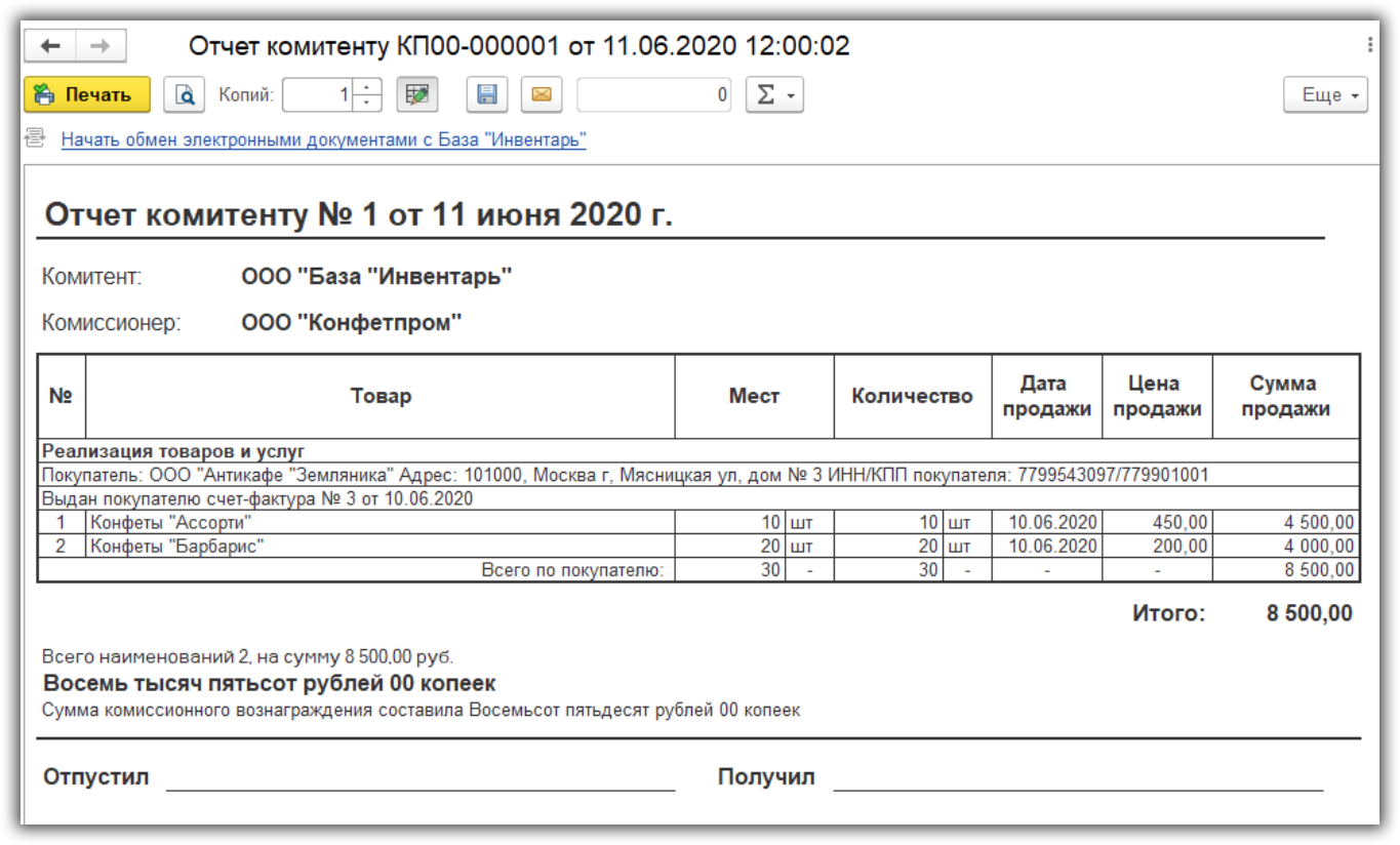 Отчет комитенту о продажах