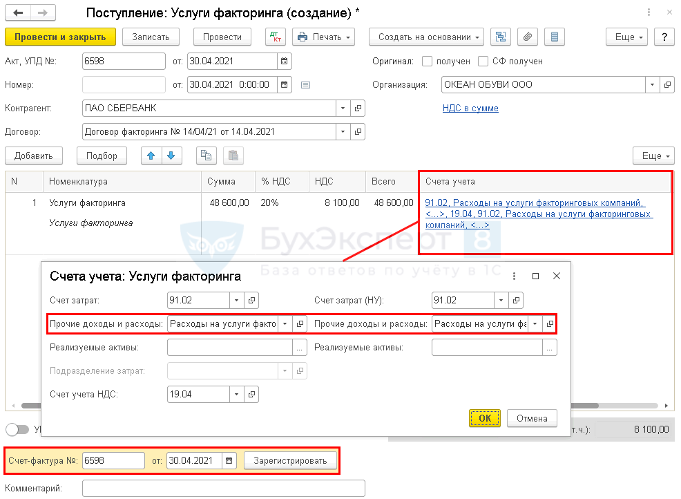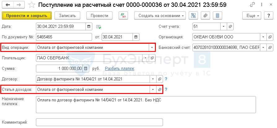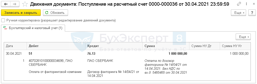 Факторинг проводки в 1С