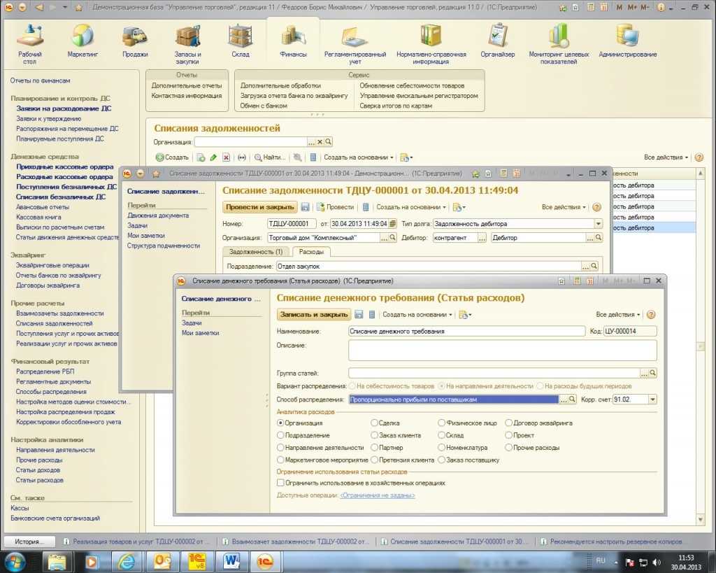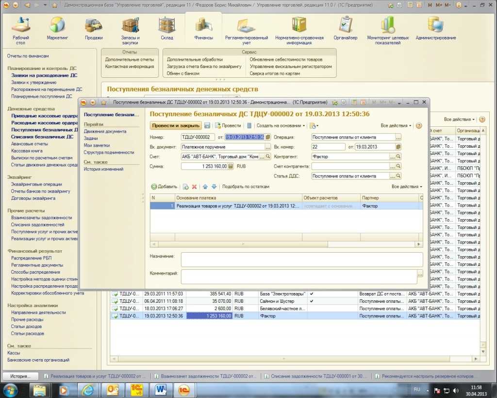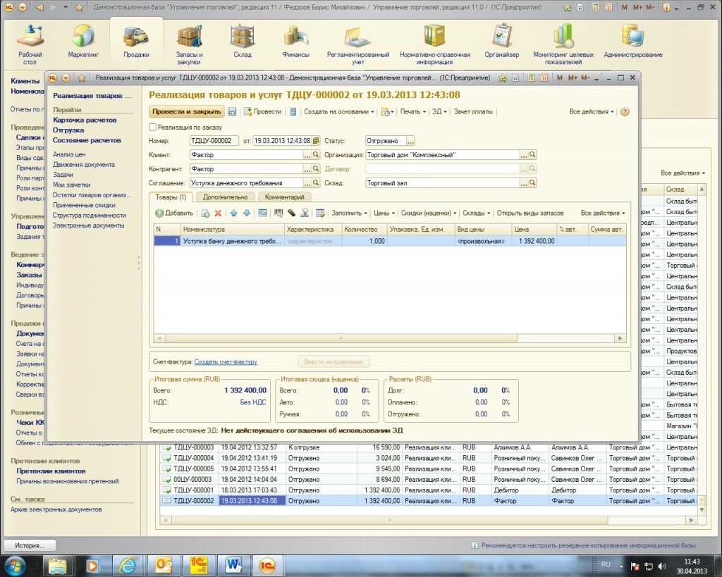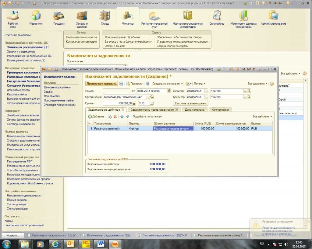 Передача задолженности на факторинг в 1С 8.3