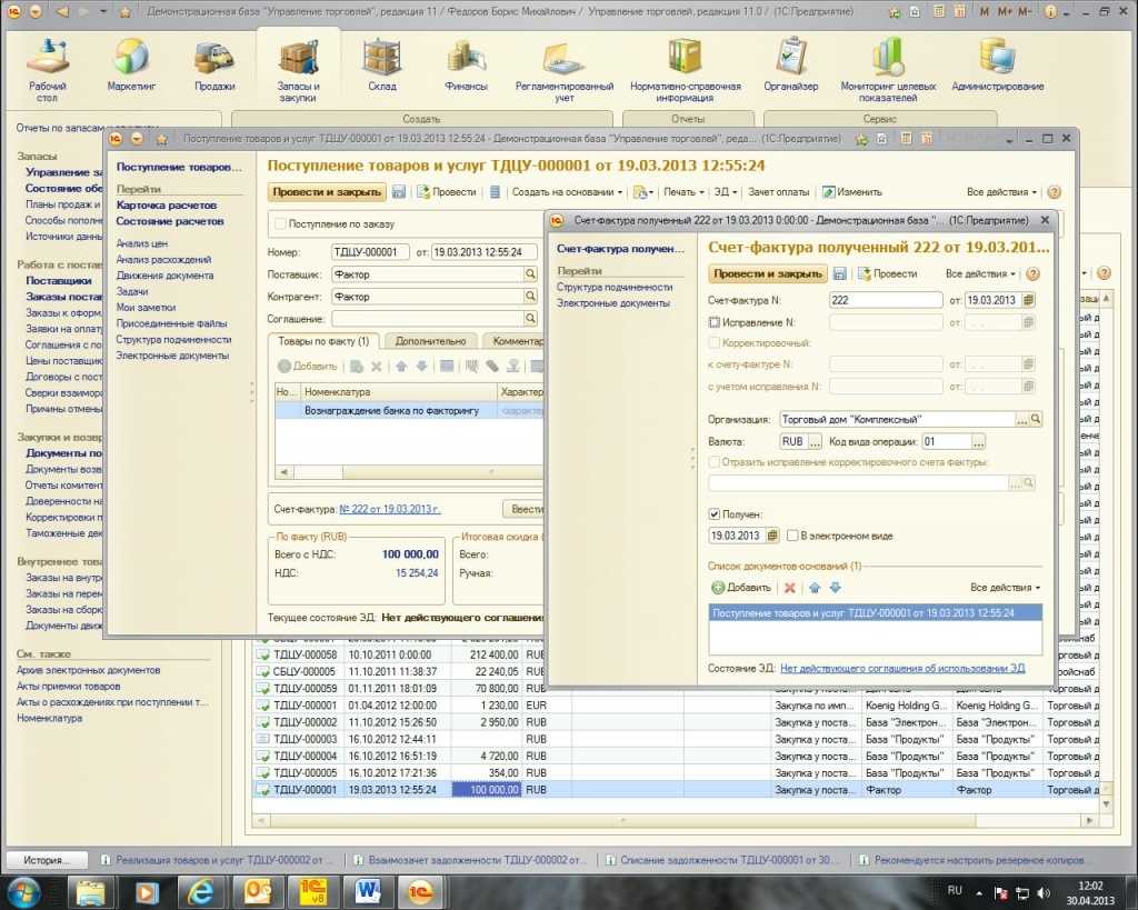 Оформление факторинговых операций в «1С:Управление торговлей 11»