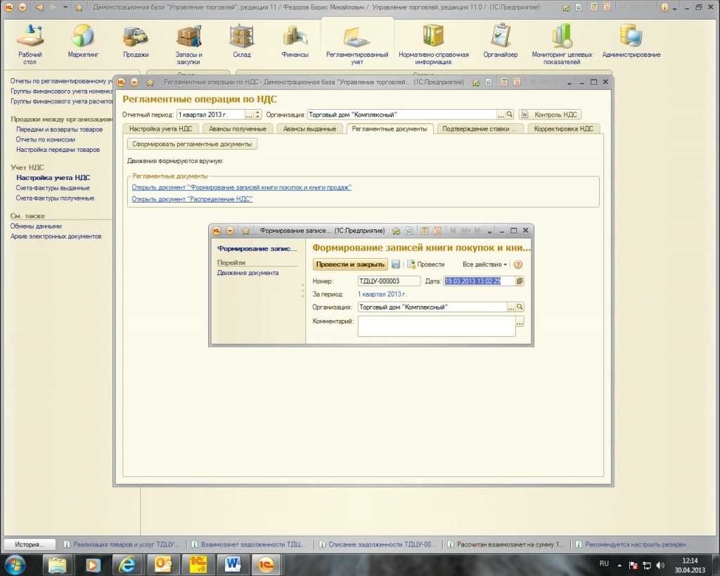 Для принятия к вычету суммы НДС с вознаграждения необходимо оформить регламентированный документ «Формирование записей книги покупок»: