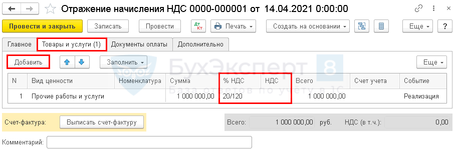 - %НДС — расчетная ставка 20/120;