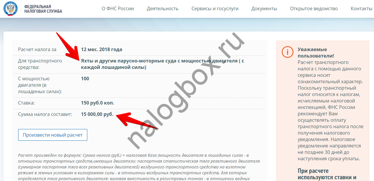 Чтобы определить сумму налога на свой катер, воспользуйтесь нашим он-лайн калькулятором