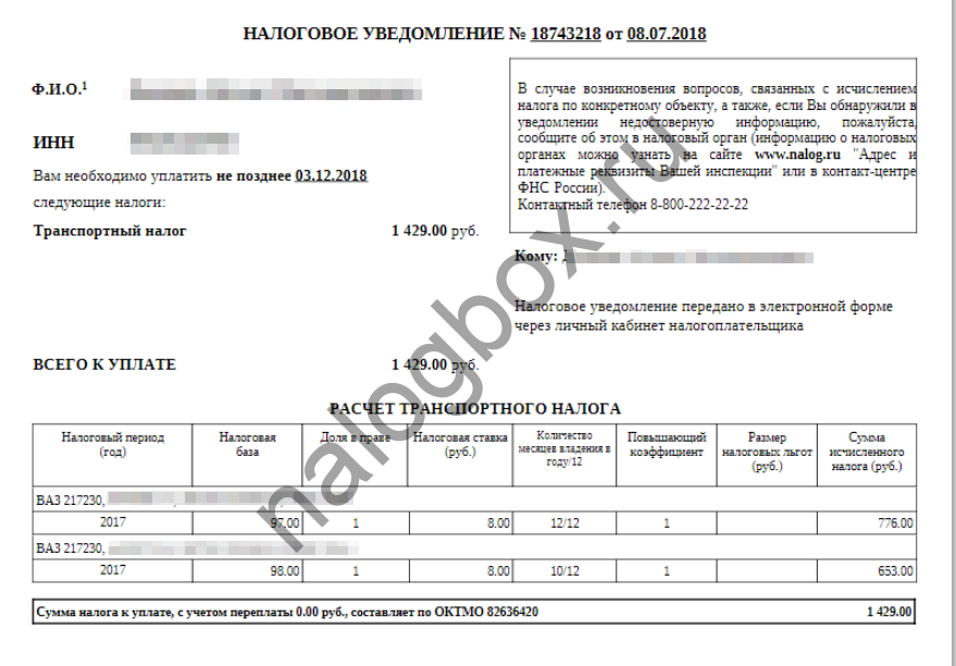 Физическим лицам информация о сумме, которую необходимо оплатить, поступает в виде уведомления от ФНС по месту жительства. Также эти сведения отображаются в Личном кабинете налогоплательщика на сайте службы.