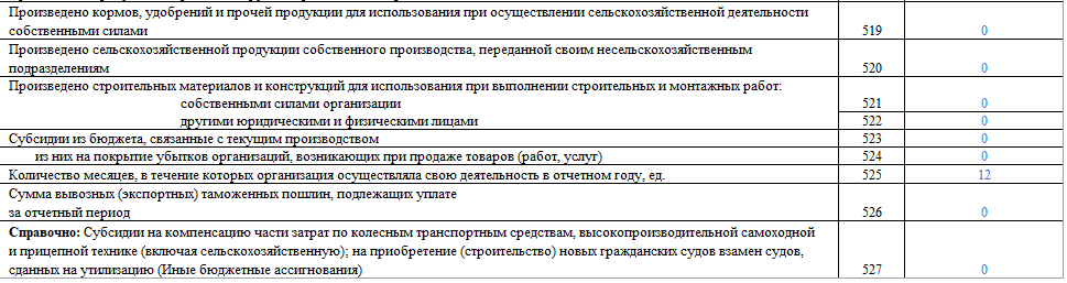 В конце раздела (525) указываем количество месяцев, на протяжении которых производили продукцию и выполняли работы
