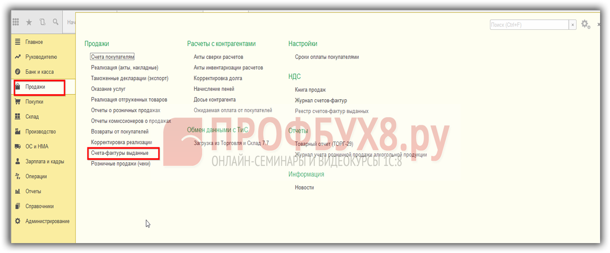 - Вызовом счет-фактуры из реестра. В документ можно внести исправления, которые отразятся в необходимом периоде.