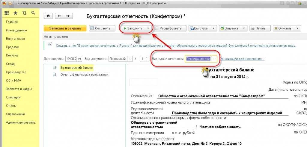 Ликвидация компании в 1С 8.3 автоматически подгружает данные до указанной даты. Вы также можете использовать последний бухгалтерский отчет и указать в нем все изменения.