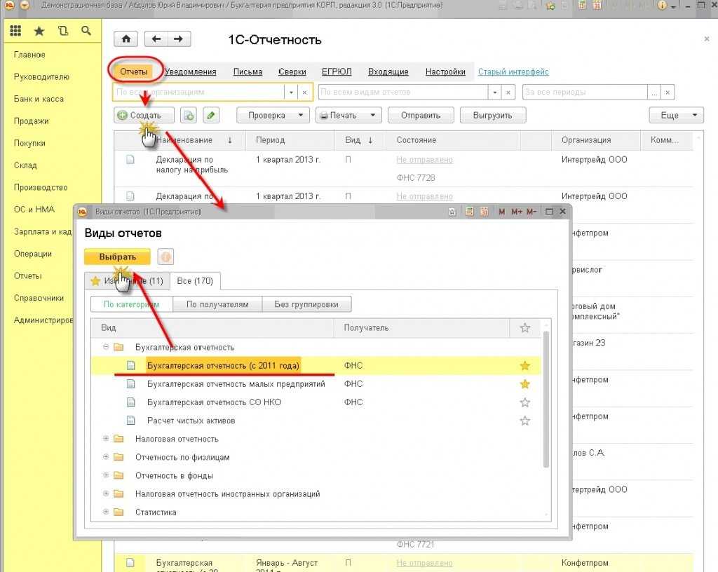 Отчеты1С-ОтчетностьРегламентированные отчеты