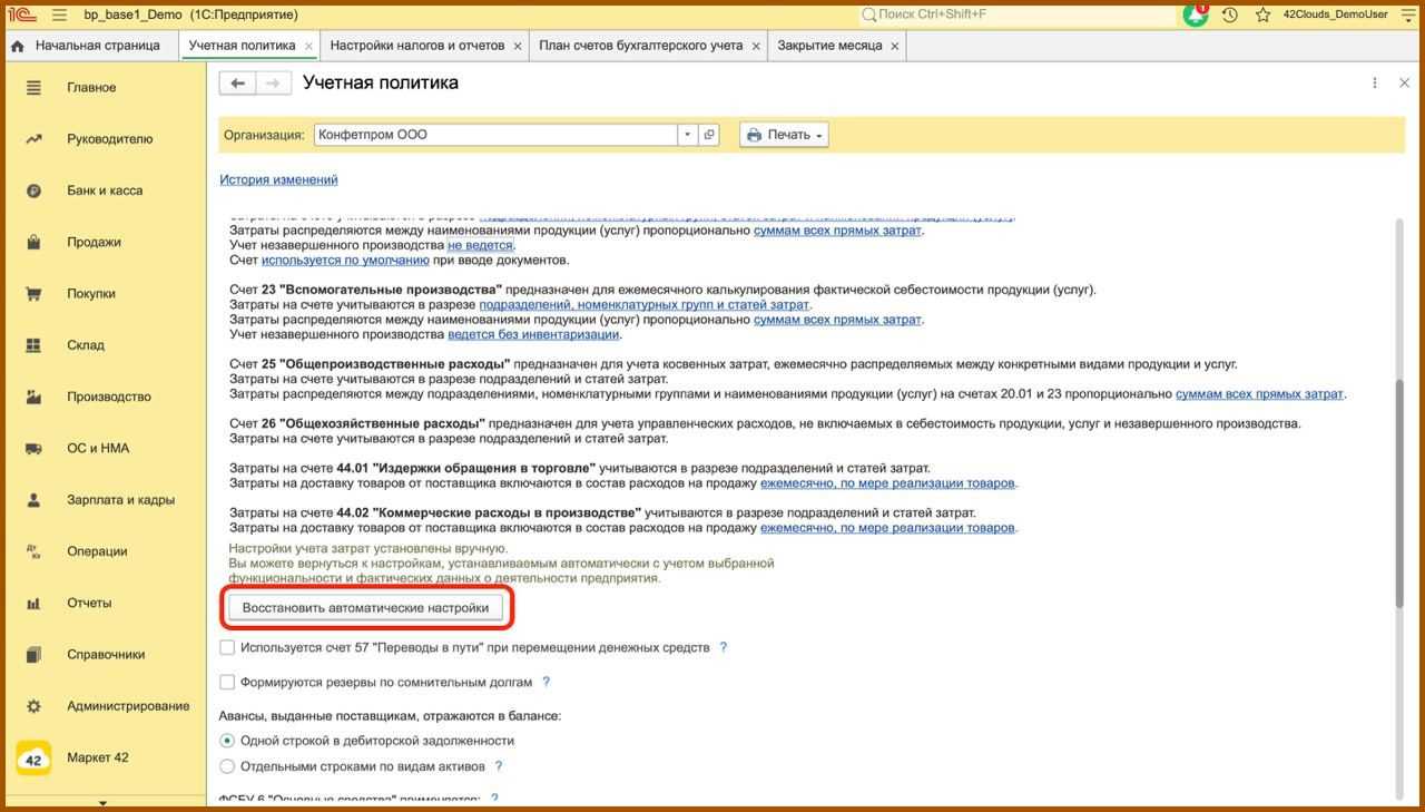 Поэтому мы советуем не пренебрегать данными настройками и тщательно их проверять каждый год. Множество различных ошибок возникает при закрытии месяца, и это напрямую зависит от настроек учетной политики. Если вы столкнетесь с ошибкой в середине или в конце года, то при изменении учетной политики необходимо перепровести все документы с начала года. Это довольно трудный процесс, так как уже закрыты месяцы и сдана вся отчетность.