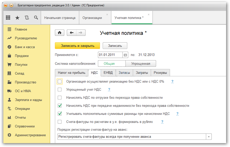 Настройка налоговой учетной политики в 1С 8.3 (ОСНО)