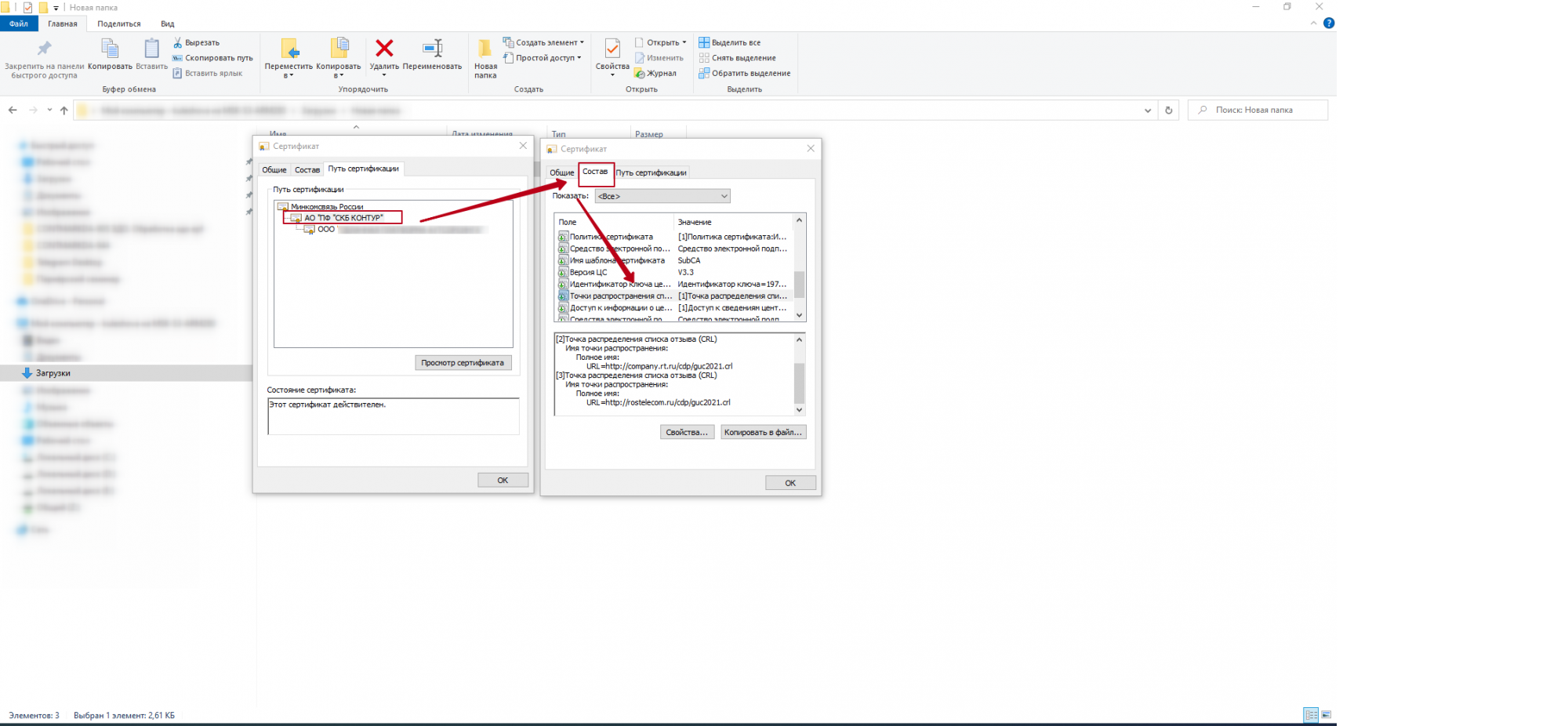 Рис.20 Цепочка сертификатов в открытой части электронной подписи