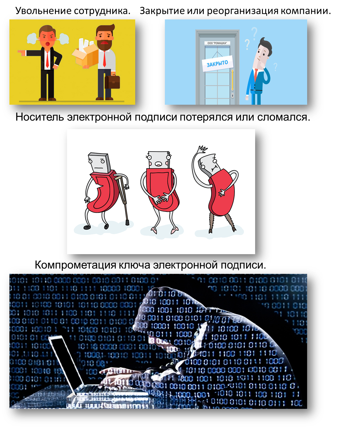 - компрометация ключа или истечение срока годности ЭП;