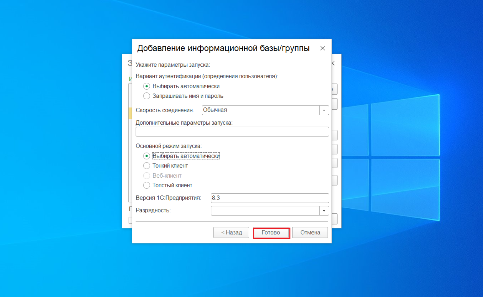 Оставляем параметры по умолчанию и нажимаем кнопку Готово.