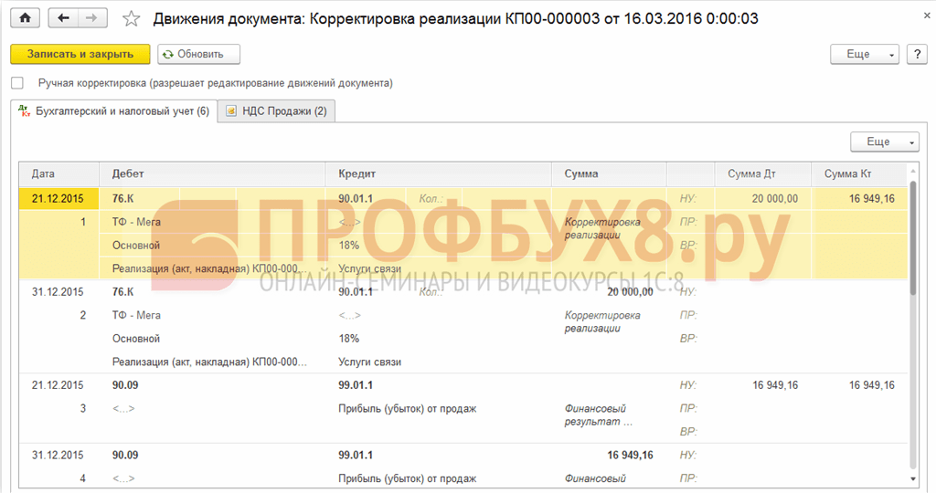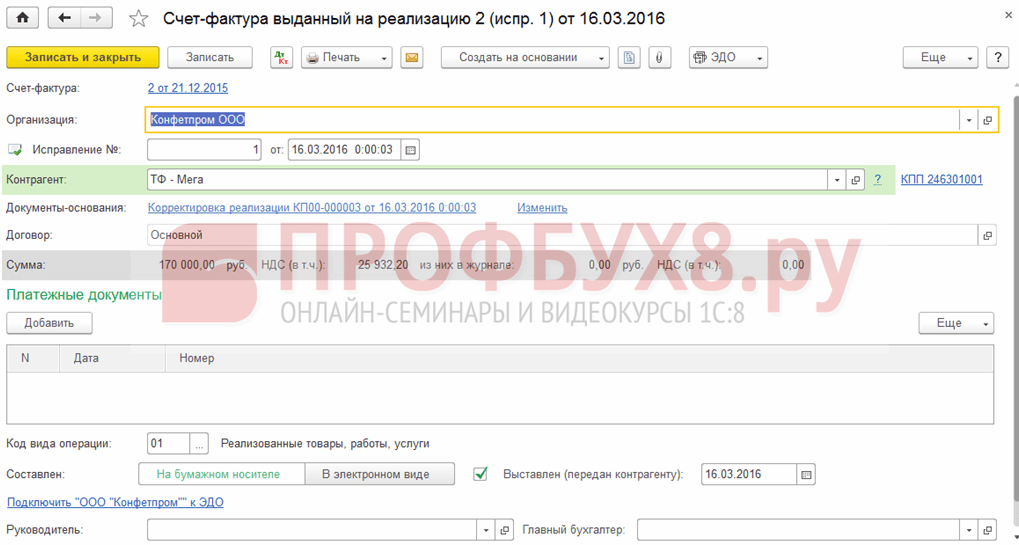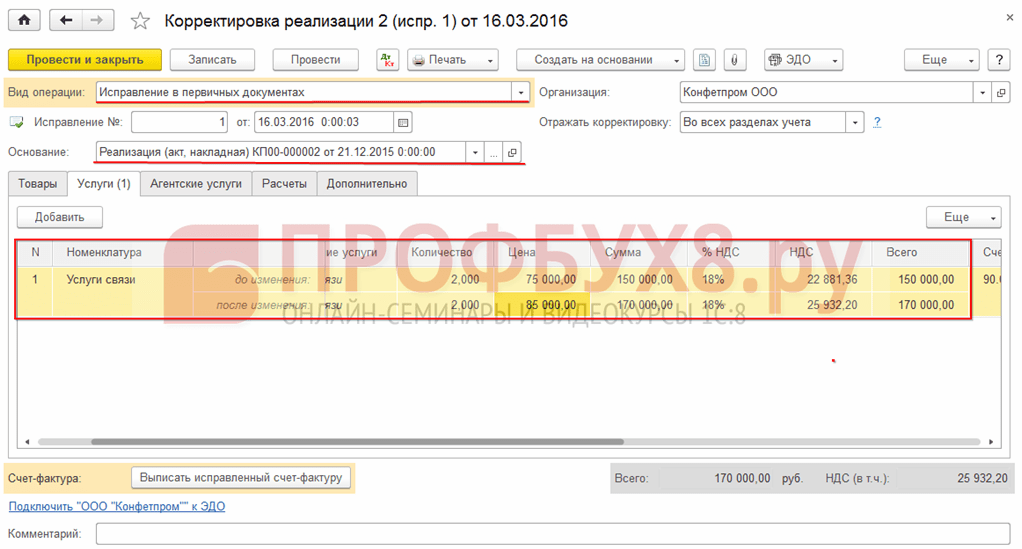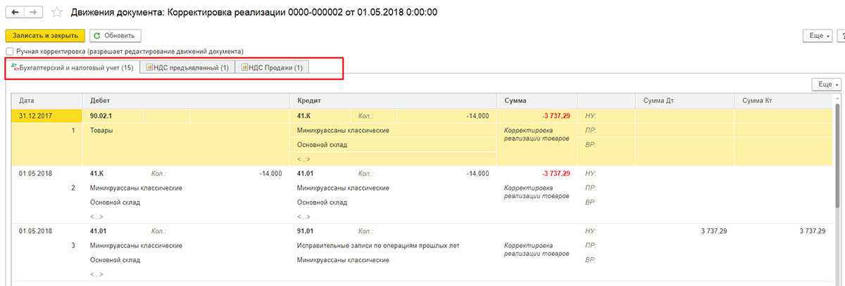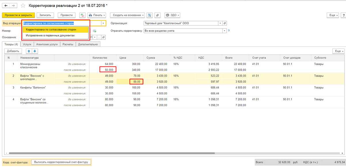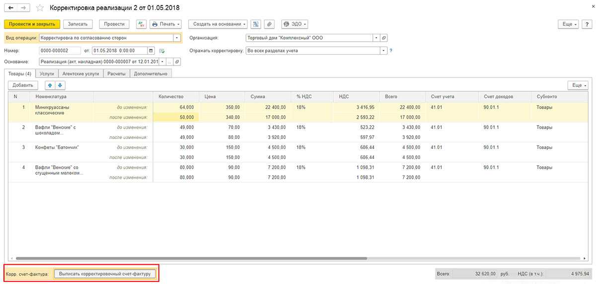 Корректировка реализации и счета-фактуры у продавца