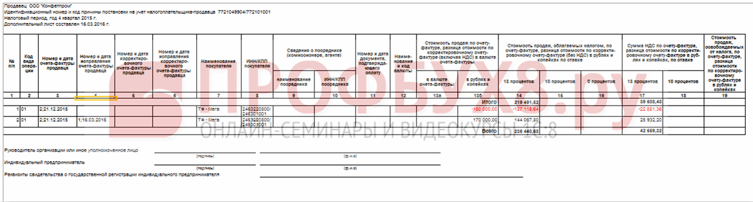 Рис.16 Корректировочные счета-фактуры