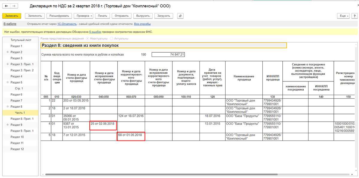 Суммовая ошибка в книге покупок обнаружена в текущем периоде