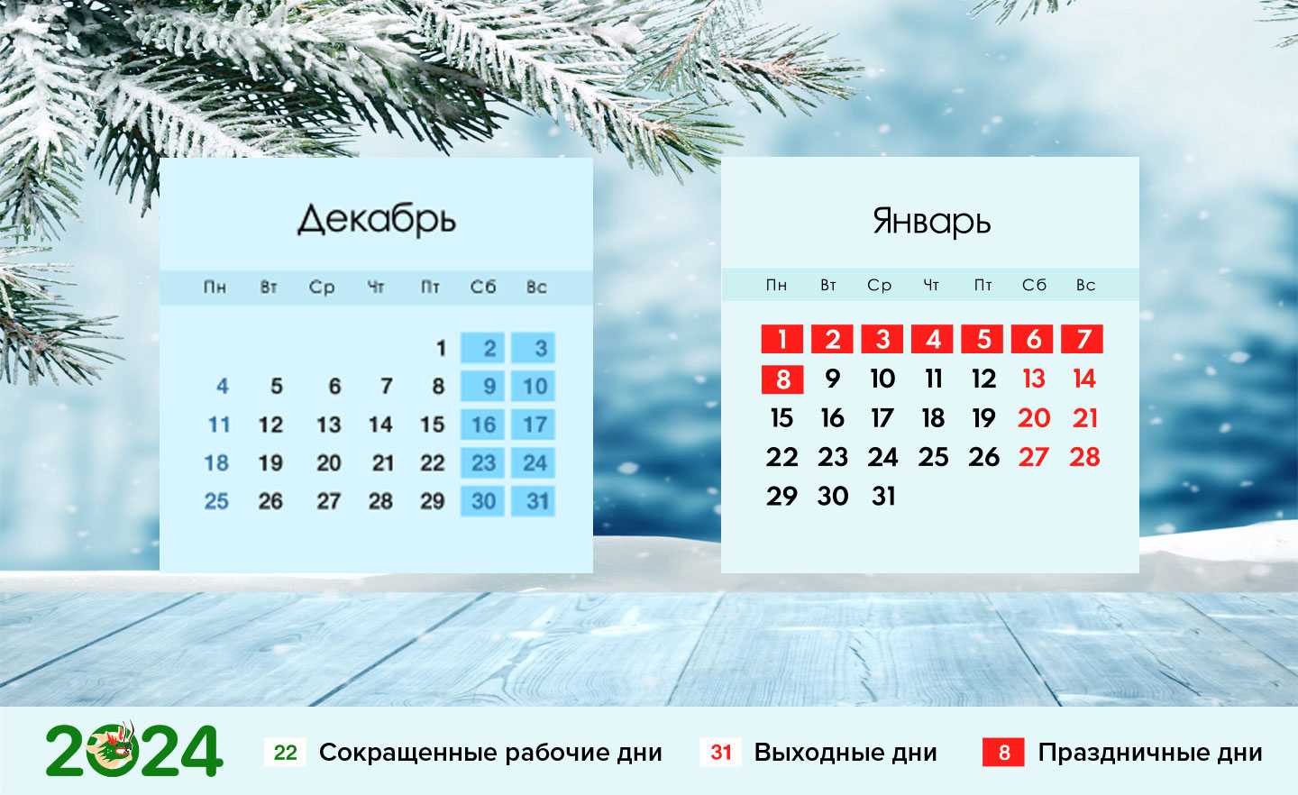 Производственный календарь на I полугодие, II полугодие и весь 2024 год: