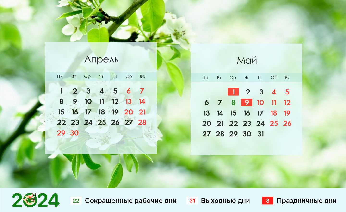 Пожалуй, самым нестандартным образом в 2024 году распределятся дополнительные выходные дни майских праздников, которые в этот раз захватят апрель месяц.