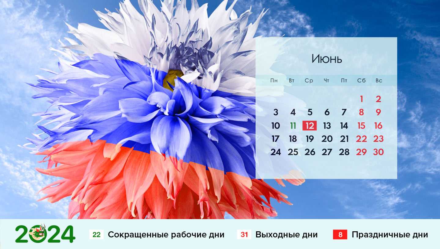 Единственное торжественное событие, на празднование которого отведут лишь одни сутки – это День России. Он 2024 выпадает на середину недели, среду.
