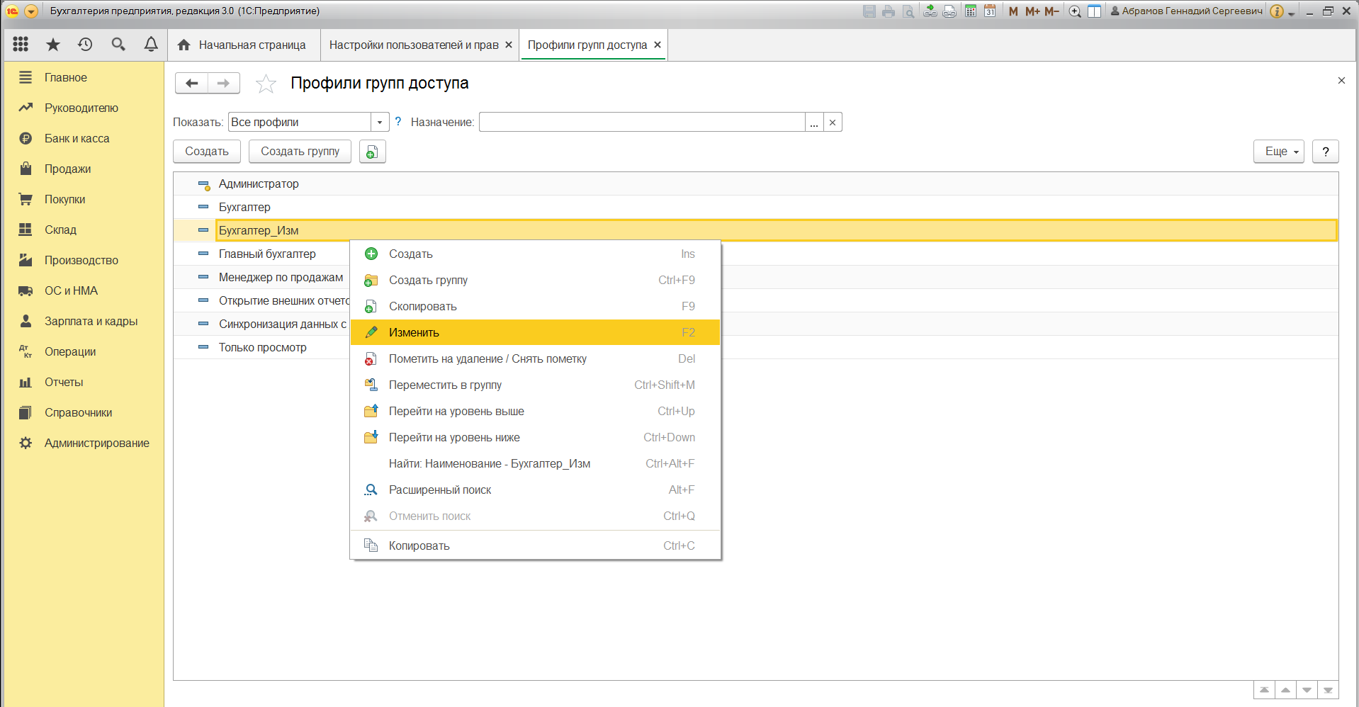 Права, роли, профили групп доступа и группы доступа позволяют настроить права пользователей в 1С Предприятие 8.3. Права пользователя в 1С 8.3 — это набор действий, которые он может совершать над справочниками, документами, отчётами и настройками