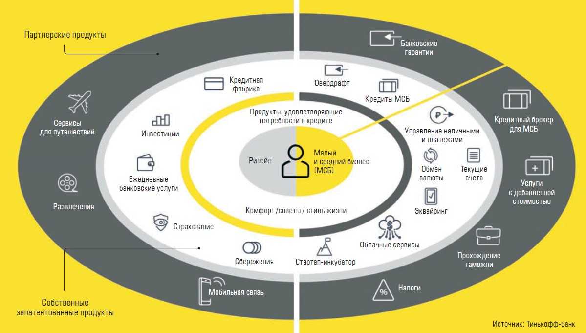 «“Тинькофф” первым стал создавать свою экосистему, которая в первую очередь является инструментом продвижения на новые рынки, выходом на новые неохваченные направления, — говорит начальник аналитического управления банка БКФ Максим Осадчий. — Конечно, потом на них выходят крупные игроки, быстро копирующие успешные стратегии (тот же Сбербанк), но к тому моменту “Тинькоф” успевает снять сливки и перемещается на новые. Это очень рискованная модель бизнеса, и воспроизвести ее может лишь один банк — тот, кто выходит в новые ниши первым».
