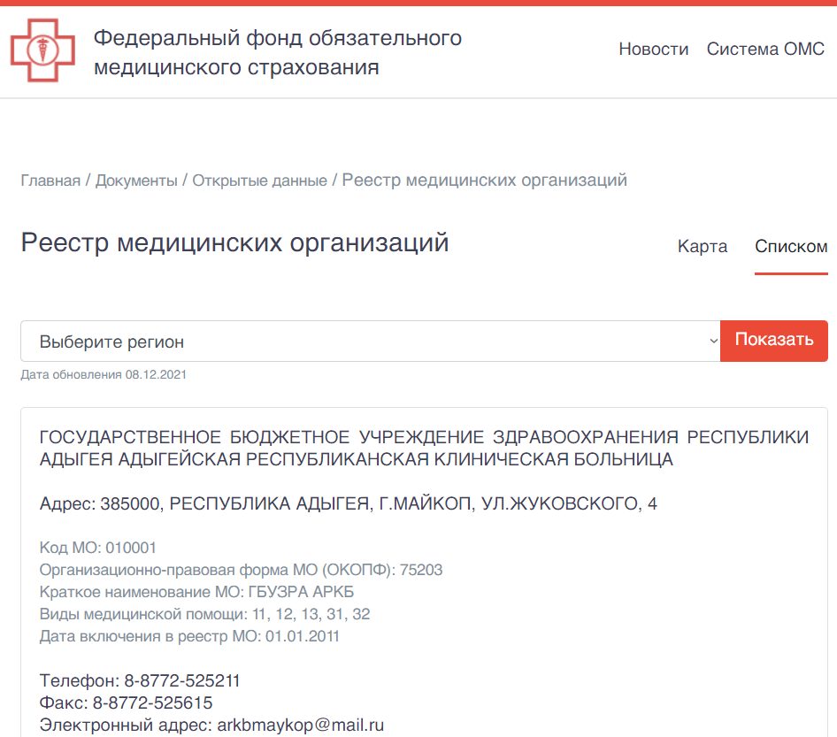 Думаю, не лишним будет упомянуть ещё один момент: ознакомиться со списком территориальных фондов ОМС, которые оказывают услуги по оформлению и замене полисов обязательного медицинского страхования, вы можете на сайте Федерального Фонда ОМС www.ffoms.ru, выбрав соответствующий регион.