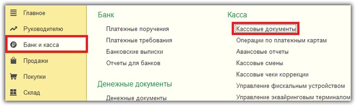 – Касса – Кассовые документы