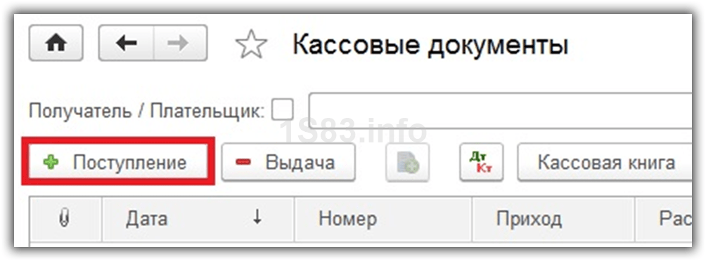– кнопка Поступление