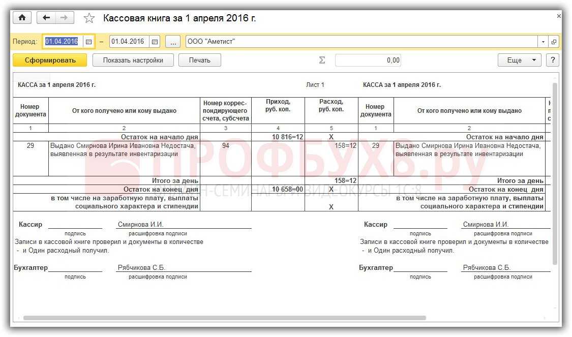 - в кассе меньше или больше денег, чем должно быть;