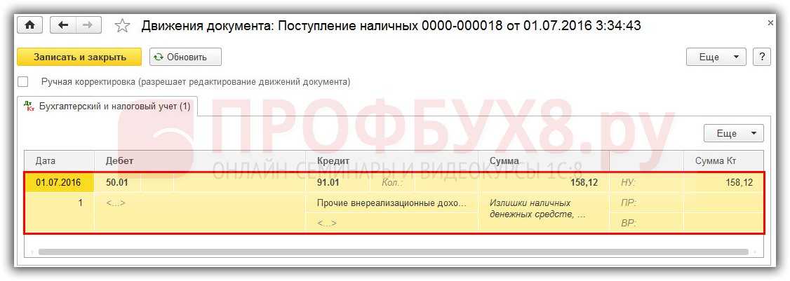 При инвентаризации кассы могут быть обнаружены излишки, то есть учетное количество в кассе денег оказывается меньше фактического.