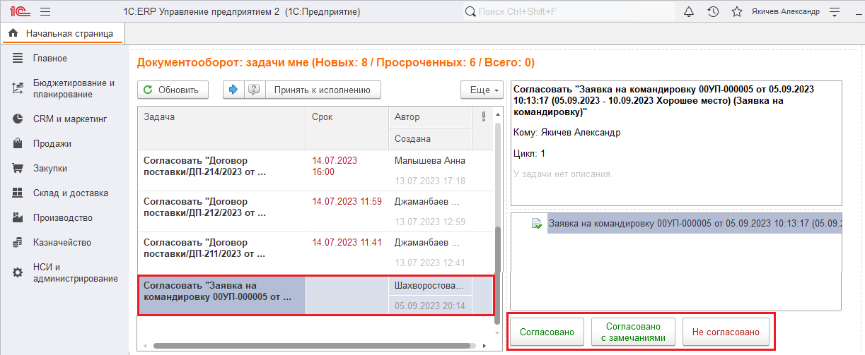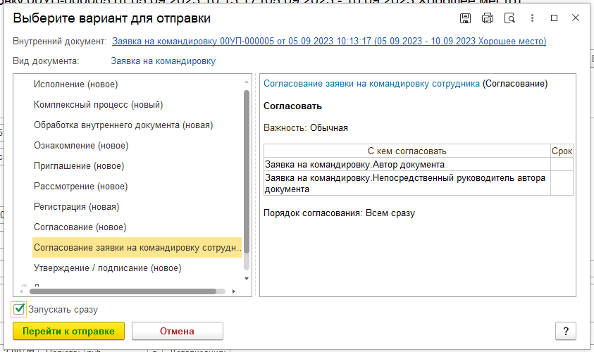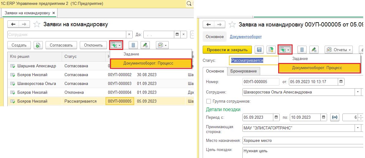 Возможно согласование Заявок на командировку с помощью 1С:Документооборот