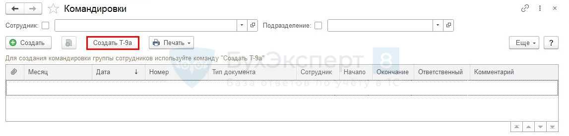 Если требуется оформить командировку нескольким сотрудникам одновременно, то в первой форме выбирается кнопка «Создать Т-9а».