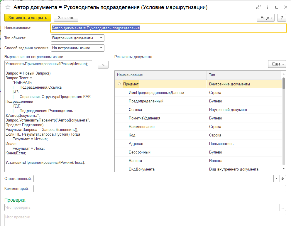 С правой стороны расположены реквизиты выбранного объекта для использования в выражениях встроенного языка. В этом же окне, не выходя