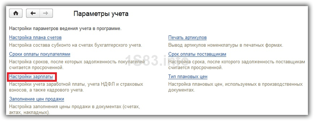 Настройка режима расчета документов находится в меню 1С 8.3 «Настройка», пункт «Расчет зарплаты»: