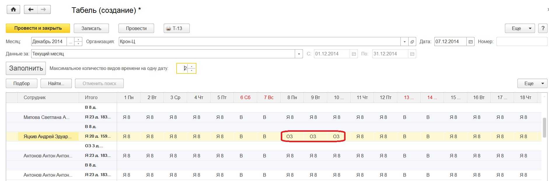 Как отметить отпуск без сохранения зарплаты в табеле учета рабочего времени в 1С ЗУП 3.0