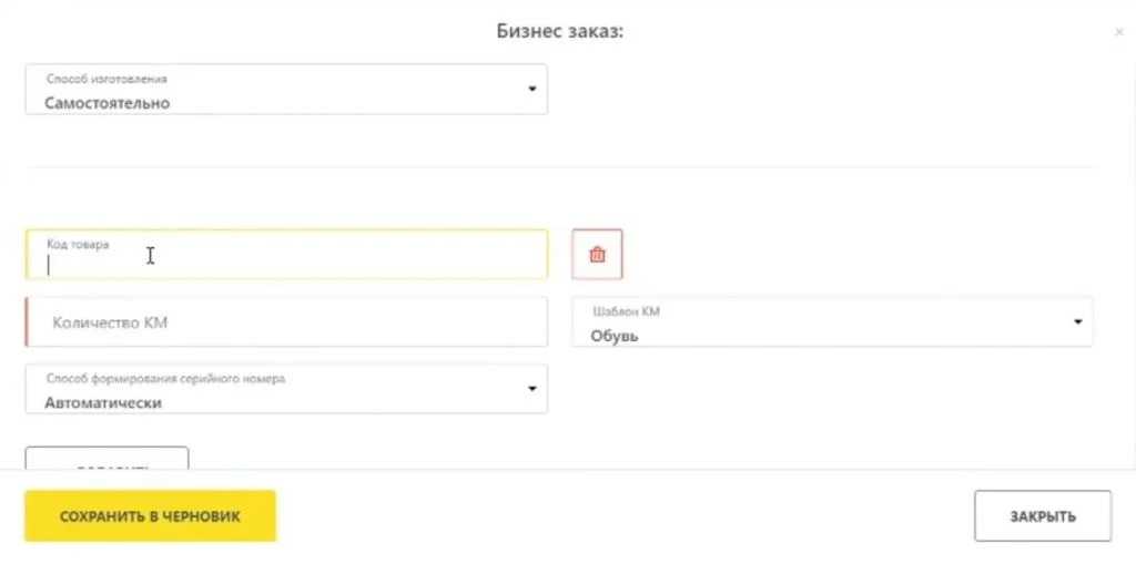 Как мы видим производитель должен заказать коды маркировки товаров, а после производства и получения кодов нанести их на готовую продукцию.