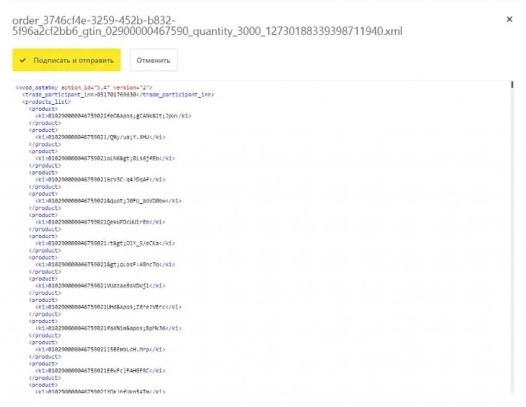 Загружаем наш сформированный XML файл. В открывшемся окне нажимаем кнопку «Подписать и отправить»