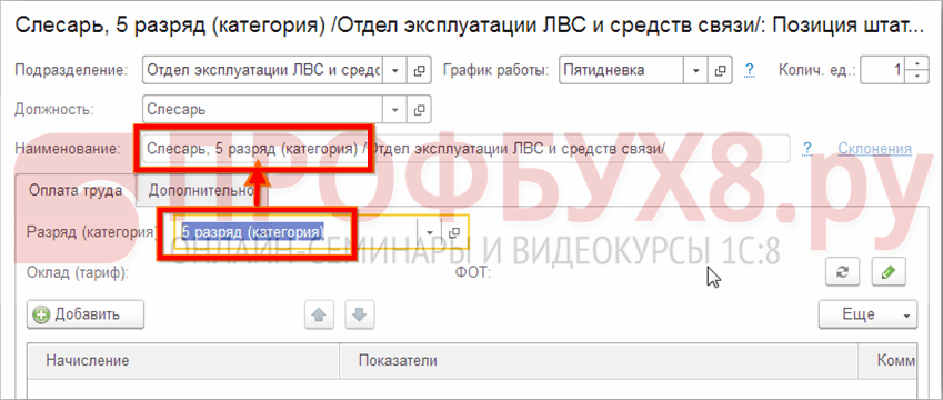 – для того чтобы не вносить в справочник должностей, например «Слесарь 4 разряда», а только “Слесарь”, а разряд устанавливать в описании позиции штатного расписания: